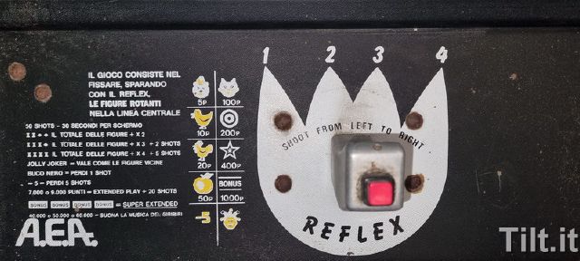 Questo forse ci spiega anche il nome del gioco; pensavamo ad un riferimento al gioco elettromeccanico “Reflex” della SIDAM, dei primi anni ’60, anche per via del funzionamento abbastanza simile; forse, invece, con quel ‘reflex’ ci si riferisce al fatto che lo schermo di gioco lo vediamo solo ‘riflesso’.