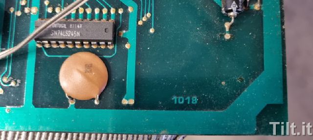 La scheda e’ abbastanza semplice, gli integrati hanno la sigla “AR” (Arcade?) e porta stampata il codice 1018.